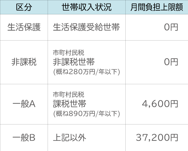 サービスを利用するにあたっての利用料金は、自治体が9割、自己負担が1割とされています。さらに世帯の所得状況に応じて負担上限月額が定められており、それ以上の費用負担が発生することはございません。